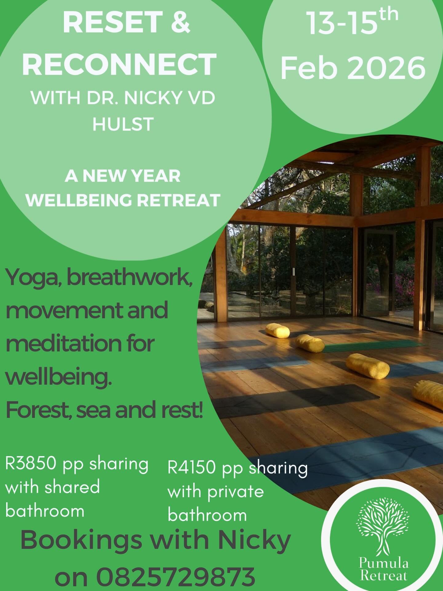 Pumula Retreat offers a dedicated space for teachers to run retreats with their students in a peaceful and safe environment, enabling fellow practitioners to gather and work on their personal development. The affordable wellness centre allows the teachers to run their retreats and be ensured that the quality of food, teaching space and accommodation meet their expectations, which allow teachers to focus on their teaching only.